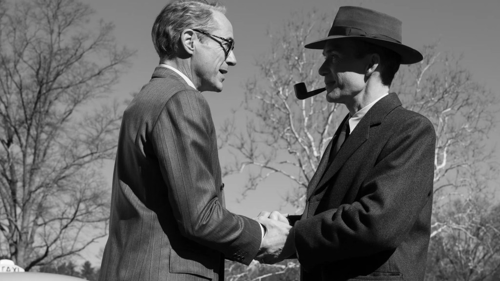 Christoper Nolan zabiera widzów do czasów II wojny światowej, by rozliczyć życie jednego z najbardziej kontrowersyjnych ludzi XX wieku. Akcja filmu skupia się na procesie budowy bomby atomowej – przechodzimy przez okres, w którym fizyk wykłada na uniwersytecie, poznaje niezwykle ważnych ludzi, między innymi Lewisa Strauss’a (Robert Downey Jr.), Alberta Einstein’a (Tom Conti), a także Leslie Groves’a (Matt Damon), stojącego na czele projektu budowy broni. Etapy życia Oppenheimera zostały znakomicie przeszyte scenami z przesłuchania, które ma miejsce po zrzuceniu bomby na Hiroszimę i Nagasaki.